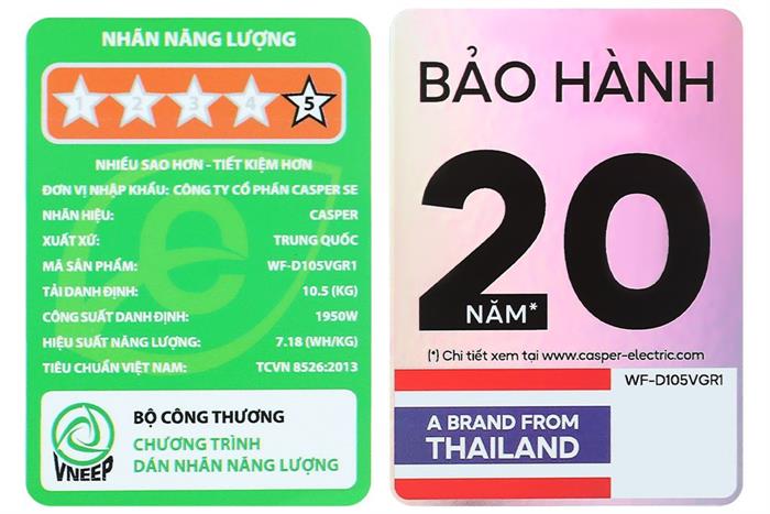 Với khả năng giặt tối đa 10.5 kg quần áo trong một lần vận hành, máy giặt Casper WF-D105VGR1 hoàn toàn đáp ứng tốt nhu cầu sử dụng hằng ngày của gia đình có từ 5 đến 7 thành viên.