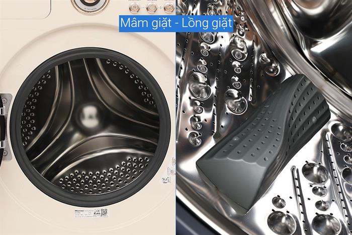 – Máy giặt Hisense có kiểu dáng cửa trước – lồng ngang hiện đại, nổi bật với gam màu trắng be tinh tế, dễ dàng kết hợp với các không gian nội thất từ cổ điển đến tối giản.