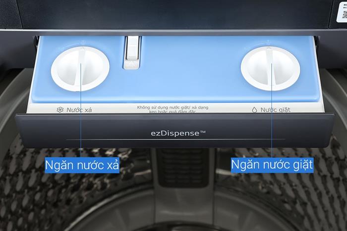 Máy giặt LG T2522AX7G được trang bị ngăn chứa nước giặt ezDispense, cho phép máy tự động phân bổ lượng nước giặt phù hợp cho từng mẻ đồ. Người dùng chỉ cần đổ sẵn nước giặt, máy sẽ căn cứ vào khối lượng quần áo và chương trình giặt để cấp lượng vừa đủ, giúp hạn chế cặn bám, tránh lãng phí và giảm thao tác đong đo thủ công trong quá trình sử dụng hằng ngày.
