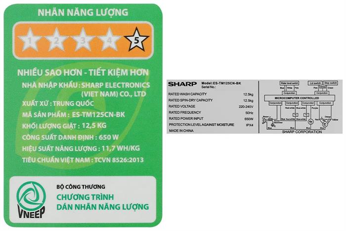 Máy giặt Sharp 12.5 kg ES-TM125CN-BK
