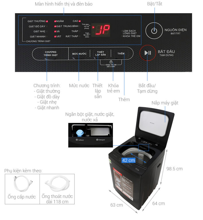 Máy giặt Sharp 12.5 kg ES-TM125CN-BK là sự kết hợp giữa thiết kế bền bỉ, công nghệ giặt mạnh mẽ và tiện ích thông minh, phù hợp với các gia đình đông người đang tìm kiếm một giải pháp giặt giũ hiệu quả, tiết kiệm và an toàn trong quá trình sử dụng hàng ngày.