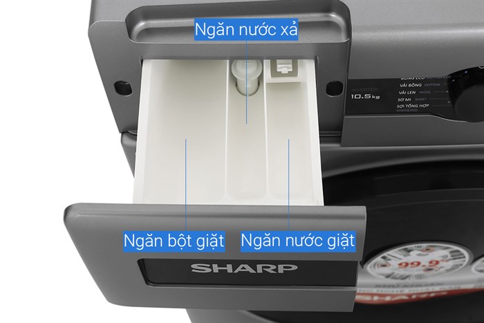 – Máy giặt Sharp với khối lượng 10.5 kg, đáp ứng tốt cho nhu cầu giặt giũ của gia đình có trên 7 người.