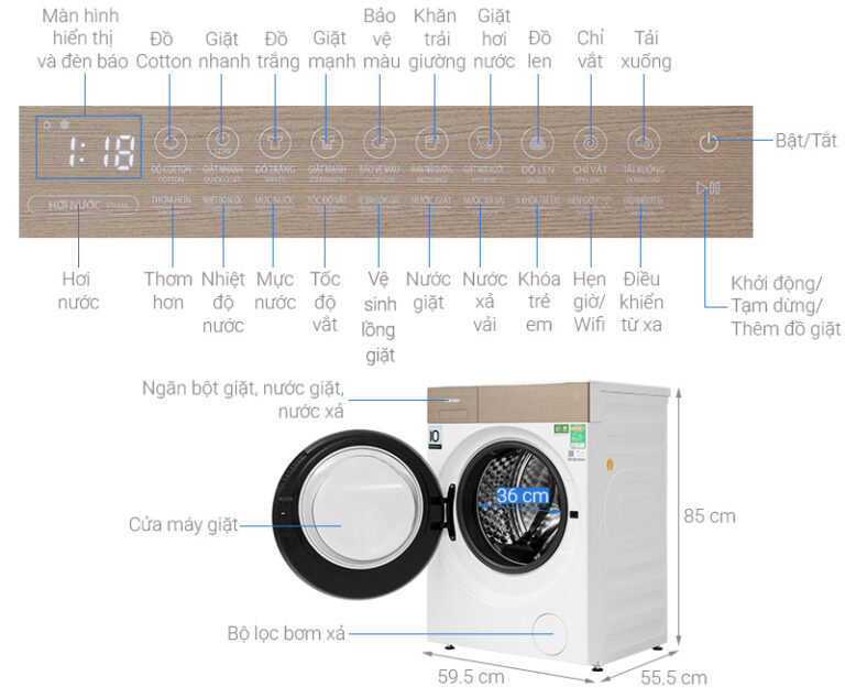 - Công nghệ AI Smart tối ưu chu trình, chăm sóc vải và tiết kiệm năng lượng hiệu quả.