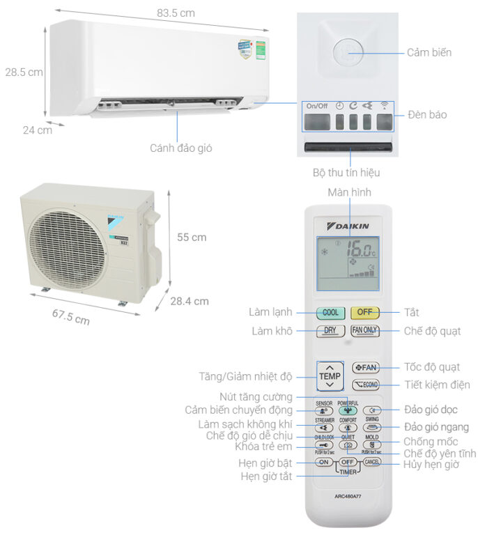 Công nghệ độc quyền Streamer: công nghệ độc quyền của máy lạnh Daikin có khả năng ức chế những chất gây mùi, tác nhân gây ô nhiễm có trong không khí như virus, vi khuẩn, nấm mốc, phấn hoa, mạt bụi, bụi mịn PM2.5. (*)