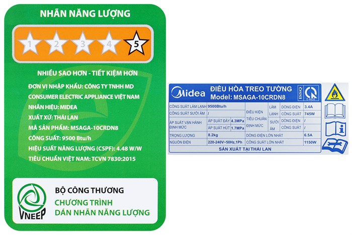 Công suất làm lạnh 1 HP – 9.500 BTU, cung cấp nhiệt độ làm lạnh tối ưu cho không gian có diện tích dưới 15m² (từ 30 đến 45m³).