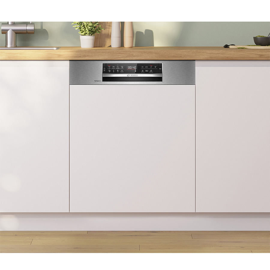 Máy rửa bát Bosch SMI6ZCS16E có thiết kế bán âm, được làm từ chất liệu thép không gỉ, bạn cần ốp thêm tấm gỗ vào mặt trước của máy cho đồng bộ với hệ tủ giúp nhà bếp của bạn trở nên sang trọng và tinh tế hơn.