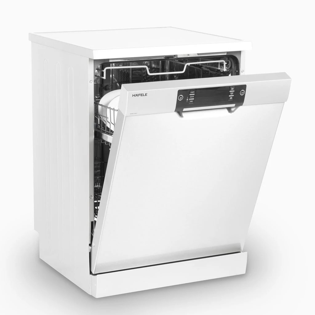 Máy rửa chén Hafele HDW-F60C thuộc dòng máy rửa chén độc lập, có thể lắp đặt linh hoạt ở nhiều vị trí khác nhau trong căn bếp. Thiết kế tinh giản nhưng không kém phần sang trọng, với sự kết hợp giữa tông màu trắng và bạc, mang lại vẻ đẹp trang nhã và hiện đại. Màu sắc này không chỉ giúp máy dễ dàng phối hợp với hầu hết các phong cách nội thất bếp, mà còn tạo cảm giác sạch sẽ, thoáng đãng, giúp căn bếp trở nên gọn gàng và ngăn nắp hơn.