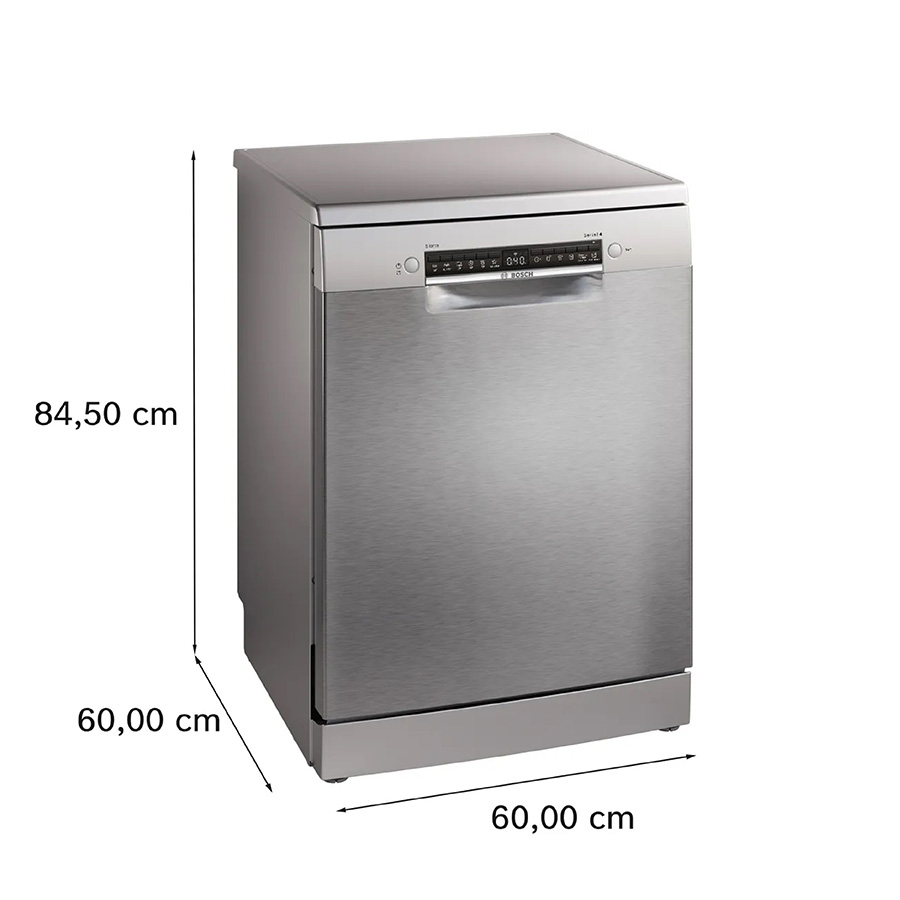 - Máy rửa chén độc lập Bosch SMS4HMI07E có kiểu thiết kế hình hộp chữ nhật đứng với gam màu bạc tinh tế, giúp bạn dễ dàng phối hợp với các nội thất khác bên trong khu vực nhà bếp của gia đình.