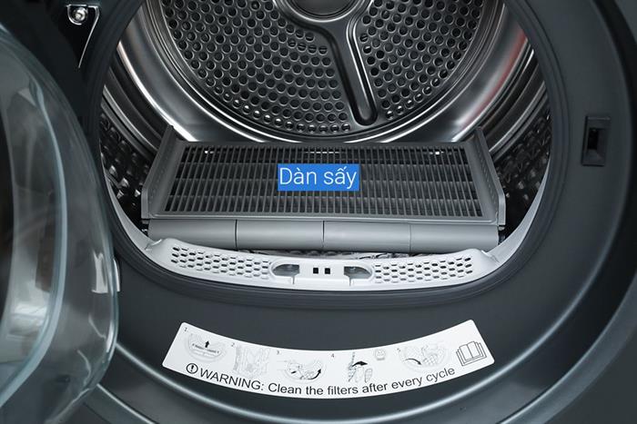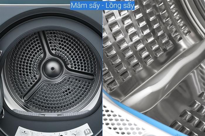 – Không chỉ vậy, công nghệ sấy đảo chiều 1:1 liên tục còn giúp bạn dàn trải quần áo, hạn chế xoắn rối và bảo vệ trang phục hiệu quả. Luồng gió mạnh với 5 cấp độ điều chỉnh có thể sấy khô các món đồ lớn mà không gây nhăn, xoắn, đồng thời hạn chế bám dính vào lồng giặt.