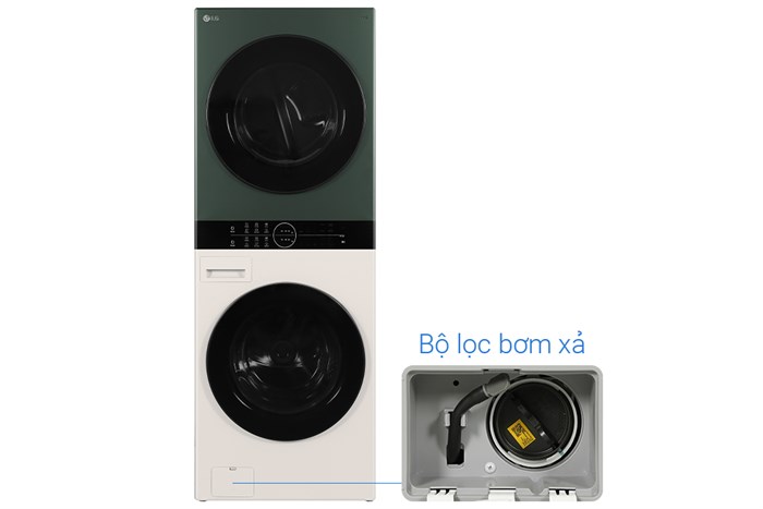 – Tháp giặt sấy LG Inverter giặt 25 kg – sấy 17 kg WT2517NHEG có kiểu dáng lồng giặt ngang với máy giặt nằm ở phía dưới và máy sấy nằm ở phía trên, nhờ đó tối ưu không gian lắp đặt cho gia đình bạn. Ngoài ra, vỏ máy còn được làm bằng kim loại sơn tĩnh điện bền bỉ, sở hữu màu xanh và màu be bắt mắt, tạo nên điểm nhấn cho không gian sống nhà bạn.