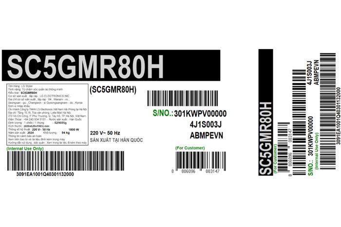 Tủ chăm sóc quần áo thông minh LG Styler Inverter 5 móc SC5GMR80H
