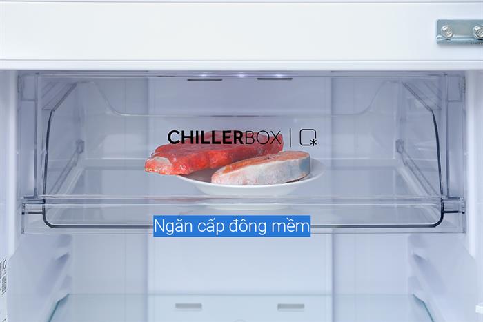 – Ngăn trữ lạnh Chiller Box -1˚C là ngăn lưu trữ riêng biệt cho việc bảo quản nhiều loại thực phẩm khác nhau như thịt, cá, đồ ăn chế biến sẵn dùng trong ngày. Ngoài ra Chiller Box có thể bảo quản riêng các loại nước giải khát, món tráng miệng, vẫn đảm bảo hương vị tươi ngon và mát lạnh.