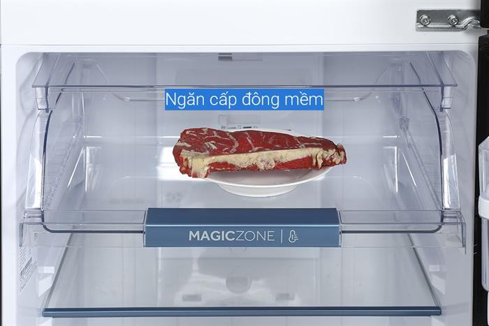 – Trang bị ngăn đông mềm Magic Zone bảo quản thịt cá ở -1 đến -3°C, giúp thực phẩm tươi ngon mà không cần rã đông khi chế biến.