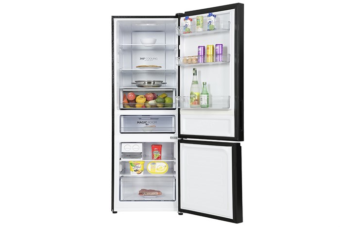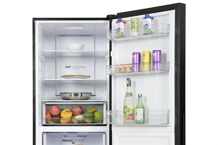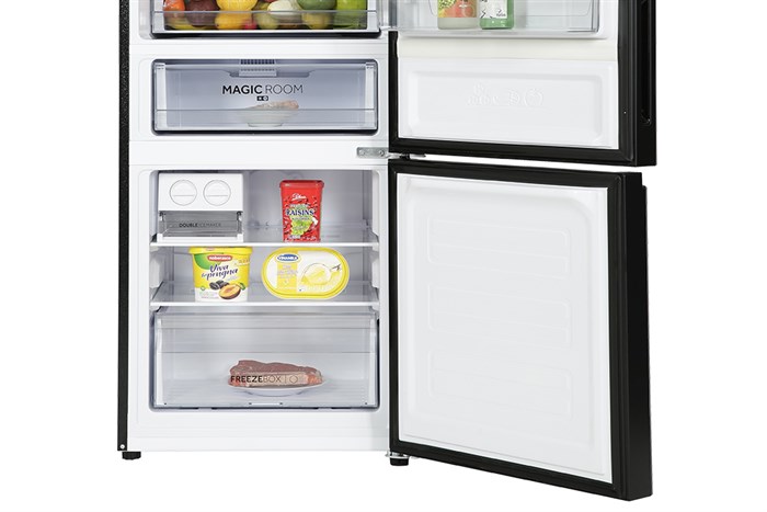 – Ngăn lạnh có dung tích 167 lít chia làm 3 ngăn đi kèm 1 ngăn rau củ, 1 ngăn đông mềm đa năng Magic Room cùng 3 khay chứa nằm ở bên cánh cửa tủ.