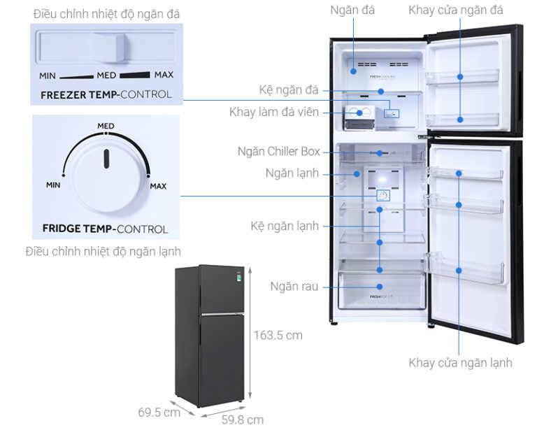 - Dung tích sử dụng 358 lít phù hợp với gia đình có từ 3 – 4 thành viên.