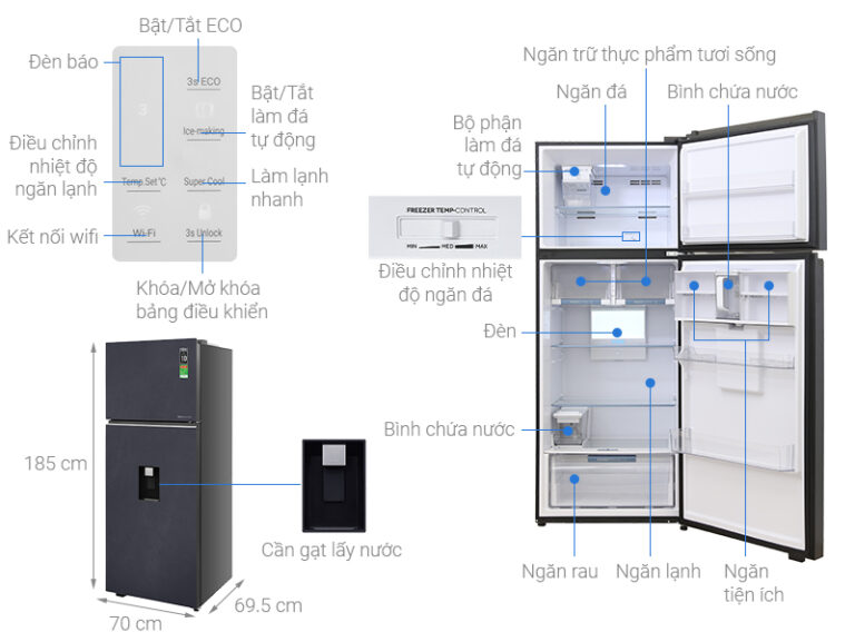 – Ngăn lấy nước ngoài tiện lợi, hạn chế mở cửa nhiều lần, tiết kiệm điện và hạn chế thất thoát hơi lạnh.