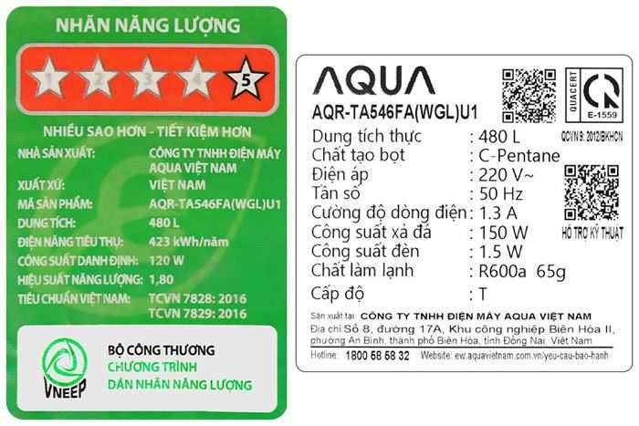 – Tủ lạnh Aqua dung tích 480 lít phù hợp cho gia đình từ 4 – 5 thành viên, đảm bảo nhu cầu bảo quản thực phẩm đa dạng.