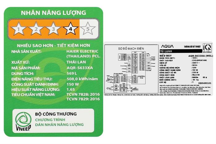 Tủ lạnh Aqua Inverter 569 lít Side By Side AQR-S633XA(WSL)