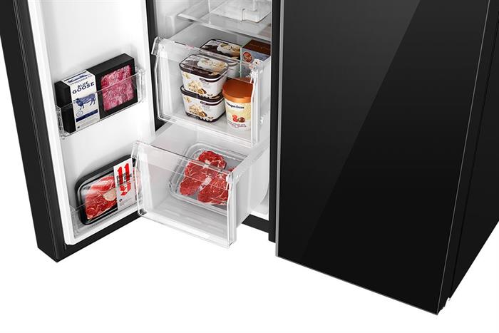 - Tủ lạnh Side by Side 2 cánh dung tích lớn lên đến 646 lít đáp ứng tốt nhu cầu đông lạnh, bảo quản thực phẩm cho gia đình đông người.