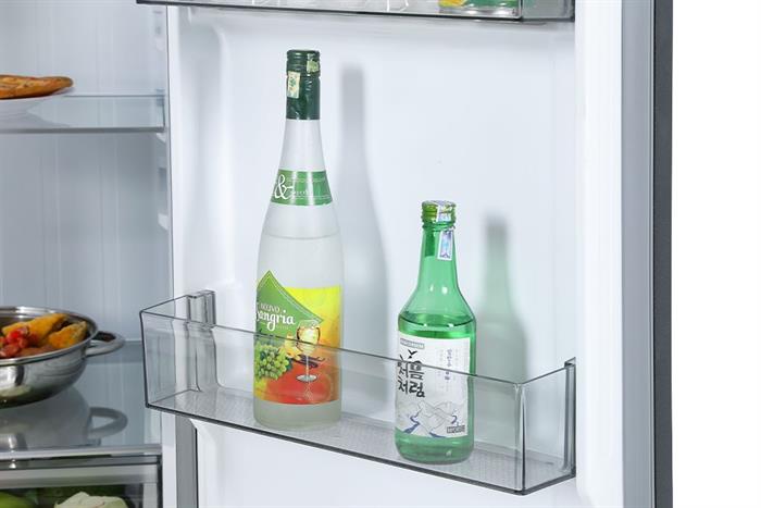 Ngăn lạnh khoảng 335 lít, phù hợp lưu trữ thực phẩm tươi cho gia đình 4 – 5 người. Không gian bên trong chia thành nhiều kệ kính và khay cửa, tiện phân loại đồ uống, sữa, gia vị, thực phẩm chế biến sẵn.