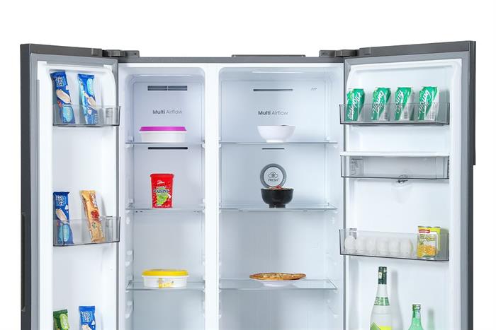 Tủ lạnh Hisense Inverter 550 lít Side By Side RS708N4EBND phù hợp gia đình 4 – 5 người cần tủ dung tích lớn, chia ngăn khoa học, làm lạnh ổn định và tiết kiệm điện. Hệ thống Multi Air Flow, 2 dàn lạnh độc lập, ngăn cân bằng độ ẩm và bộ lọc khử khuẩn, khử mùi giúp bảo quản thực phẩm tươi ngon hơn, trong khi bảng điều khiển ngoài và lấy nước bên ngoài mang lại trải nghiệm sử dụng tiện lợi trong sinh hoạt hằng ngày.