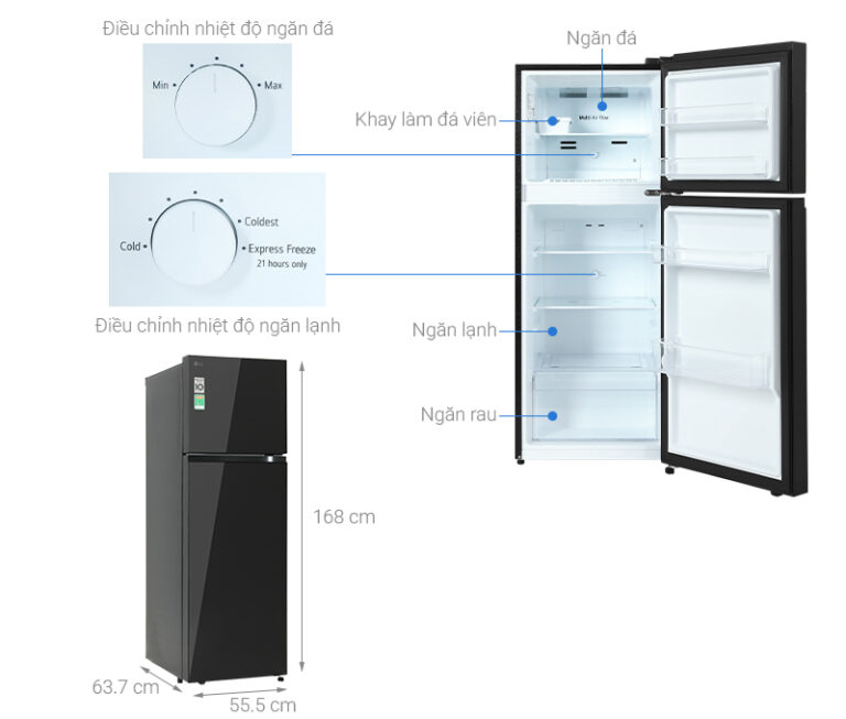 - Sức chứa 266 lít, đáp ứng tốt nhu cầu bảo quản thực phẩm của gia đình 2 – 3 người hoặc người độc thân cần trữ nhiều đồ.