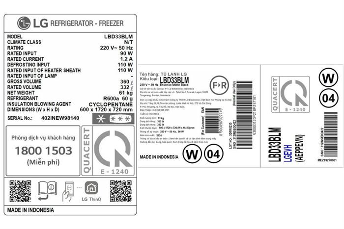 Xem thêm: Chứng nhận công nghệ trên tủ lạnh LG