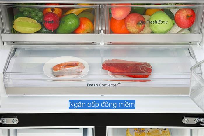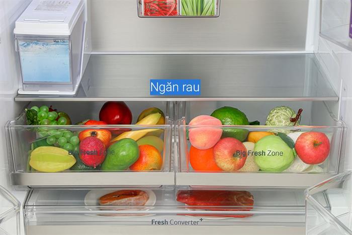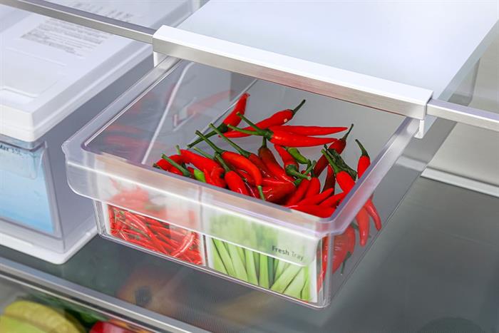 – Song song đó ngăn Fresh Tray hiện hữu như là một không gian tách biệt để phân loại và lưu trữ các loại gia vị, nước chấm, sốt, rau.