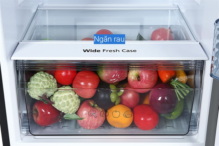 Ngăn rau củ của chiếc tủ lạnh có góc mở rộng Wide Fresh Case và có dung tích lớn, người dùng dễ dàng trữ các loại rau củ khác nhau trong tủ, nhất là những loại có kích thước lớn mà không cần cắt ra.
