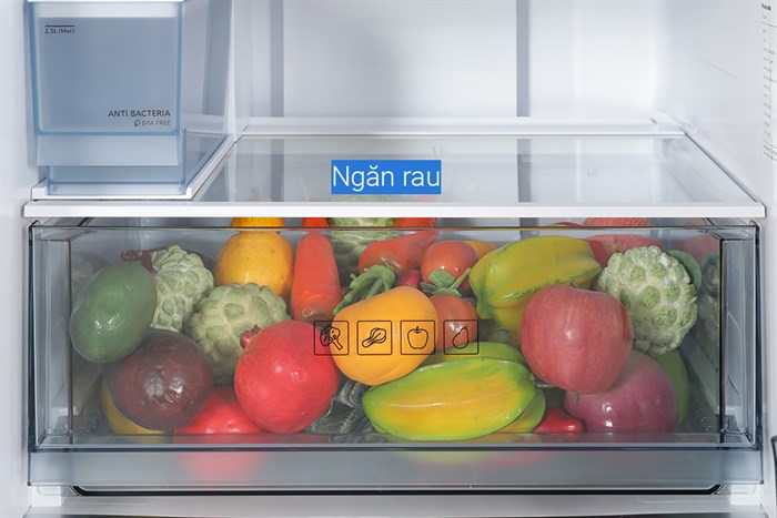 – Ngăn rau củ giữ ẩm đến 90%: Duy trì được độ ẩm tối ưu đến 90% để giữ được độ tươi ngon của các loại rau củ và trái cây tốt hơn trong suốt thời gian bảo quản.