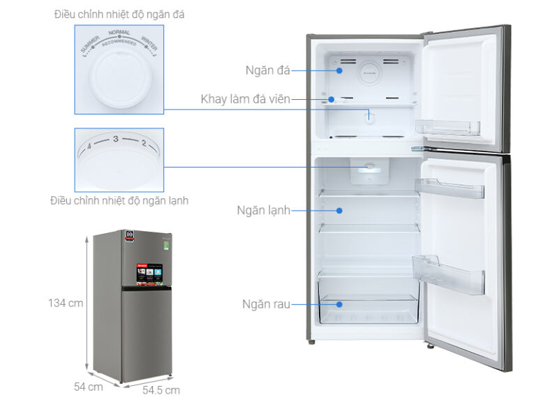 - Dung tích sử dụng 181 lít cho gia đình từ 2 – 3 thành viên có nhu cầu bảo quản đa dạng thực phẩm.