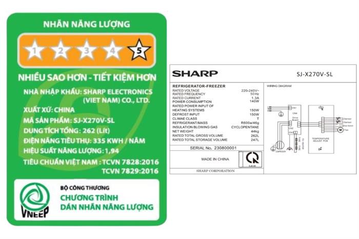 Tủ lạnh Sharp Inverter 247 lít SJ-X270V-DG”>Tủ lạnh Sharp Inverter 247 lít SJ-X270V-DG sở hữu gam đen xám trầm hiện đại, thích hợp cho gia đình 2 – 3 thành viên đang tìm kiếm một mẫu tủ nhỏ gọn, vận hành Inverter ổn định, làm lạnh đa chiều và có ngăn rau giữ ẩm riêng để sắp xếp thực phẩm ngăn nắp hơn.