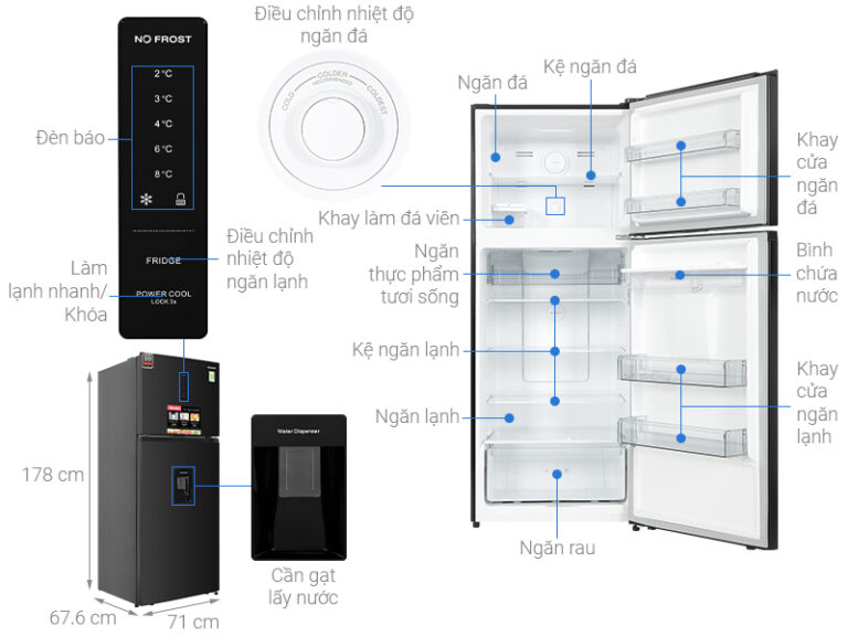 – Ngăn đá có 2 ngăn chứa giúp việc sắp xếp và lưu trữ thực phẩm tiện lợi.