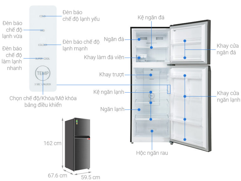 – Sản phẩm có dung tích sử dụng 312 lít, đáp ứng nhu cầu bảo quản thực phẩm tối ưu cho các hộ gia đình từ 3 – 4 người.