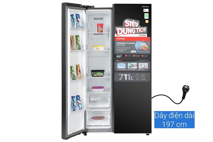 - Dung tích sử dụng 711 lít phù hợp nhu cầu sử dụng gia đình có 5 thành viên trở lên.