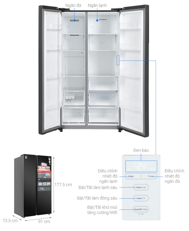 – Thiết kế Side by Side 2 cánh hiện đại, dễ thao tác và phù hợp với không gian bếp lớn.